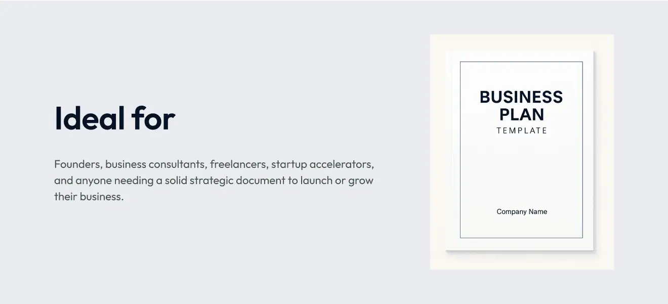Whether you’re pitching to investors, applying for funding, or building internal strategy, this template gives you everything you need to articulate your business model, market analysis, competitive advantage, and financial projections.